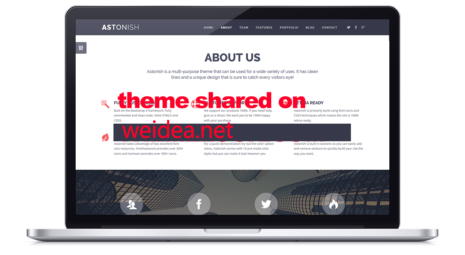 Astonish is primarily build using font icons and CSS3 techniques which means the site is 100% retina ready.